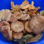 Mavi bacaklı mantarları bulmak zordu çünkü otların arasında saklanıyorlardı. Ama epey iri ve sulu mantar topladık. Bir kovaya toplamayı başardığımız mantarlar şunlar: Çok eski mantarları hemen atıyorum çünkü etleri çok ufalanıyor. Mantarın her halini seviyoruz, bu yüzden onları kış için dondurup, konserve yapıp kurutuyoruz. Bu arada, doğru dondurma ve kurutma konusunda...