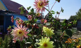 Çocukluğumdan beri yüreğime dokunan bir sahne: Çiçek tarhlarında açan, çok büyük ve kadifemsi, bazıları çift, bazıları parlak ve çeşitli renklerde olan dahlialar: parlak sarı, beyaz, kırmızı. Gözlerimi bu neşeli, güzel gençlerden ayıramıyorum. Dahlialar, beyazdan koyu bordoya kadar çeşitli renklerde bulunan, bazıları iki renkli, güzel çiçeklerdir. Tomurcukları çeşitlidir...